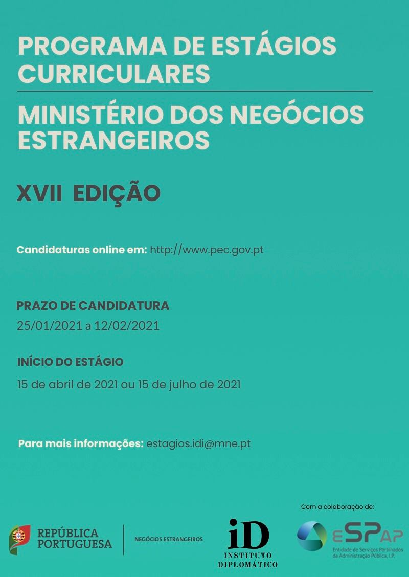 A XVII edição do Programa de Estágios Curriculares do Ministério dos Negócios Estrangeiros está aberta!
